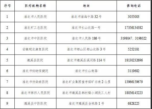 全市二級以上醫(yī)療機構(gòu)發(fā)熱門診地址和電話