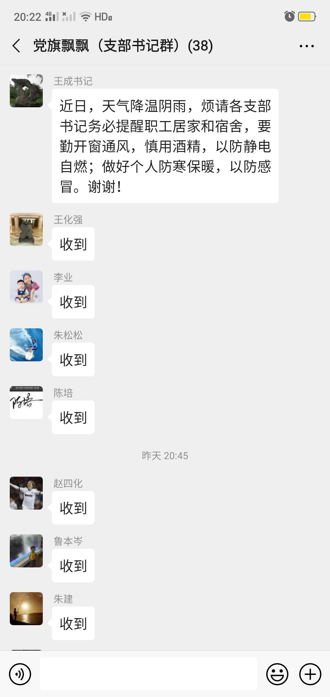 短暫的私下交流,迅速統(tǒng)一了思想。于是,群里各單位、各部門負(fù)責(zé)人紛紛回復(fù)“收到”“收到”……