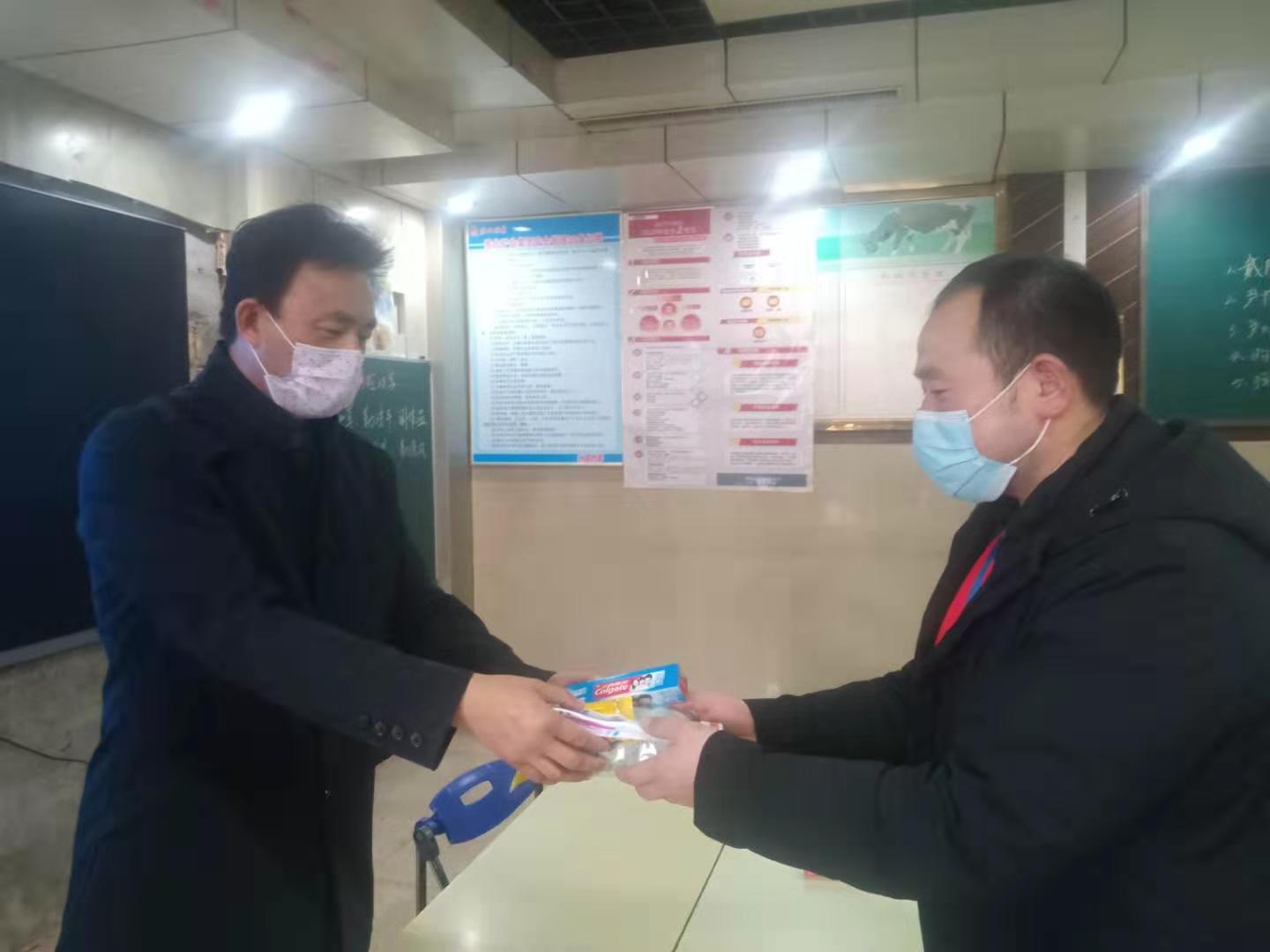 “感謝你們一直默默堅(jiān)守在崗位,希望你們做到防控疫情和安全生產(chǎn)兩手抓,吃好,喝好,把咱的身體養(yǎng)的棒棒的,有什么問題,可以直言不諱給我提?!碧J嶺礦工會(huì)主席丁多利深入掘進(jìn)一區(qū)會(huì)議室親自將毛巾、牙刷、桶面、純牛奶等生活用品送給職工并真切說道。
