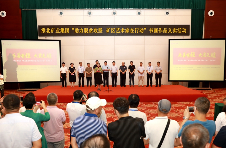 “我要兩幅”“我要三幅”……8月13日上午,淮北礦業(yè)會(huì)議中心一樓多功能大廳內(nèi)人頭攢動(dòng),熱鬧非凡。一場(chǎng)由淮北礦業(yè)集團(tuán)工會(huì)與淮北礦區(qū)文聯(lián)共同舉辦的以“助力脫貧攻堅(jiān),礦區(qū)藝術(shù)家在行動(dòng)”為主題的愛心義賣活動(dòng)正在這里舉行,吸引著淮北礦區(qū)眾多愛心人士參與。