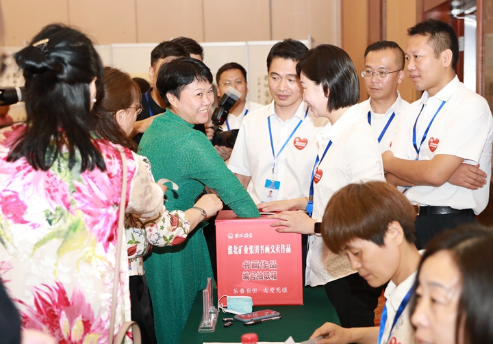 淮北礦業(yè)集團(tuán)黨委副書記、紀(jì)委書記周偉宣布活動(dòng)開幕后,認(rèn)購(gòu)處立即排起了30多人的認(rèn)購(gòu)小長(zhǎng)隊(duì)?!巴ㄟ^書畫義賣的形式,凝聚各方愛心力量,所得善款全部用于金秋助學(xué)和救助礦區(qū)困難職工?!被幢钡V業(yè)集團(tuán)工會(huì)第一副主席劉杰在活動(dòng)致詞中說。