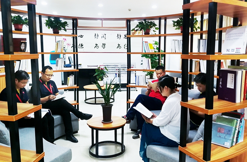 (2020年8月5日,信湖礦職工在寬敞舒適的職工書(shū)屋內(nèi)快樂(lè)學(xué)習(xí))