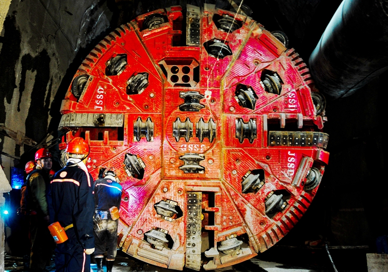 (技術(shù)人員在檢查盾構(gòu)機(jī)運(yùn)行情況)