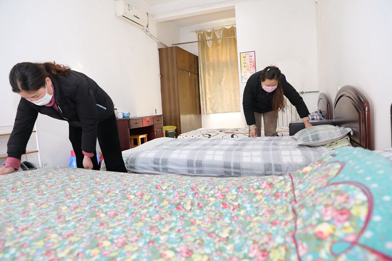 童亭礦后勤管理科職工正在收拾整理職工的寢室,為留守職工創(chuàng)造良好生活環(huán)境。