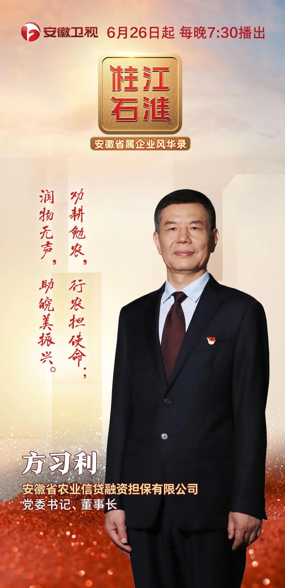 一家成立才剛剛六年的年輕企業(yè),肩上的使命卻重如泰山,因為他們承載了上下五千年的農業(yè)重擔!在7月14日晚播出的節(jié)目里,安徽省農業(yè)信貸融資擔保有限公司黨委書記、董事長方習利為您講述農擔人把“春風”送到千家萬戶的故事,講述安徽農擔在財政支農、金融惠農上,從“有沒有”,到“大不大”,逐步走向“強不強”的發(fā)展路徑。