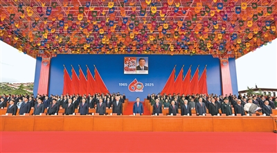 王滬寧發(fā)表講話(huà)。他說(shuō),1965年9月,在黨中央親切關(guān)懷和黨的民族政策光輝照耀下,西藏自治區(qū)宣告成立。這是西藏發(fā)展史上具有劃時(shí)代意義的大事,鞏固了西藏和平解放和民主改革的偉大成果,實(shí)現(xiàn)了西藏社會(huì)制度的歷史性跨越。60年來(lái),西藏經(jīng)濟(jì)社會(huì)全面發(fā)展,民族區(qū)域自治制度成功實(shí)踐,民族團(tuán)結(jié)日益鞏固,各族人民生活蒸蒸日上,充分展現(xiàn)了中國(guó)共產(chǎn)黨領(lǐng)導(dǎo)的堅(jiān)強(qiáng)力量,充分展現(xiàn)了我國(guó)社會(huì)主義制度的顯著政治優(yōu)勢(shì)。