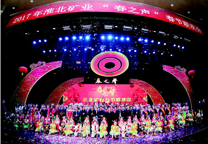 聯(lián)歡會在歌伴舞《明天更美好》中圓滿結(jié)束,淮北礦業(yè)領(lǐng)導(dǎo)走上舞臺,與演職員和先進(jìn)人物代表親切合影留念。