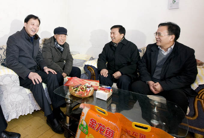 在楊莊礦省勞動(dòng)模范、退休職工童啟云的家中,黃曉武親切地與他握手,為他送上了新春禮包,說(shuō):“春節(jié)即將來(lái)到,給你拜年了,家里都好吧?孩子們咋樣?感謝你過(guò)去為淮北市的發(fā)展做出了杰出貢獻(xiàn),希望你健康長(zhǎng)壽,過(guò)一個(gè)幸福的晚年”。