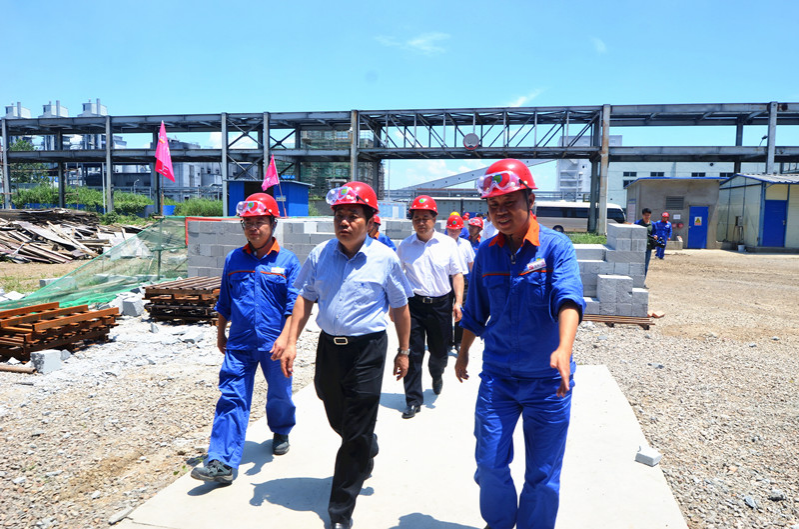 7月18日,滁州市委副書記、市長許繼偉在定遠(yuǎn)縣縣委書記萬瑞健的陪同下到華塑股份公司調(diào)研二期工程建設(shè)情況。華塑股份公司領(lǐng)導(dǎo)丘永桂、高旭及鹽化管委會(huì)相關(guān)人員陪同調(diào)研。
