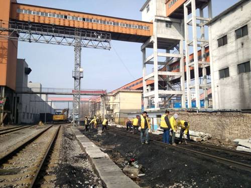 這兩處地磅基礎(chǔ)為混凝土澆筑,均是長(zhǎng)度4.8米、寬度2.8米,因平常線路運(yùn)量較大、機(jī)車(chē)過(guò)往密集,沒(méi)有足夠時(shí)間進(jìn)行作業(yè);同時(shí)又存在地磅兩側(cè)線路高低銜接不好,軌道下沉量不一致的安全隱患。因此,該段特意選定在春節(jié)放假的特殊時(shí)段進(jìn)行拆除施工。整個(gè)施工動(dòng)用軌道車(chē)、側(cè)翻車(chē)、挖掘機(jī)等多臺(tái)大型設(shè)備配合,對(duì)2處地磅基礎(chǔ)范圍以及地磅兩側(cè)的線路進(jìn)行破碎、清篩,回填新道碴、整修線路軌道幾何尺寸,全部作業(yè)將淸挖路基雜物80方,回填道碴100方,更換混凝土枕80根,計(jì)劃在年初四煤礦恢復(fù)生產(chǎn)前完工。