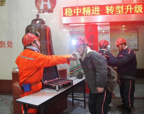 該礦安監(jiān)人員利用酒精測(cè)試儀對(duì)春節(jié)放假期間留守入井人員進(jìn)行“隱患人”排查,確保無(wú)“隱患人”入井。
