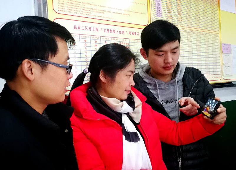 礦工們用手機錄拍大會盛況,精神振奮,熱情高漲。