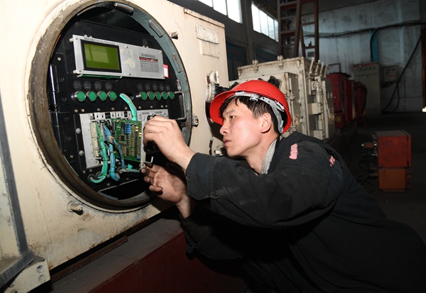 井下機(jī)電設(shè)備故障時(shí)發(fā),有時(shí)工作面一天出現(xiàn)兩三次跳電,不得不經(jīng)常停工檢修。一旦停工,礦井便減少。徐超知道設(shè)備故障后,暗暗下定決心了,向這一技術(shù)難題發(fā)起了“沖刺”。他查閱大量資料,尋求問題的癥結(jié)所在,再反復(fù)查找資料,對照問題終于找到原因。因電器設(shè)備在挪動(dòng)時(shí)電纜人員松動(dòng),造成供電不穩(wěn)定,徐超眼前一亮,給設(shè)備電纜添加一個(gè)防拽托鉤,與也在找原因的隊(duì)長徐計(jì)續(xù)的想法不謀而合。說干就干,經(jīng)多次模擬試驗(yàn)沒有發(fā)生任何問題后,他們高興極了;這項(xiàng)技術(shù)革新不但降低了維修費(fèi)用,而且增加了產(chǎn)量,更增強(qiáng)了他技術(shù)革新的信心和決心。