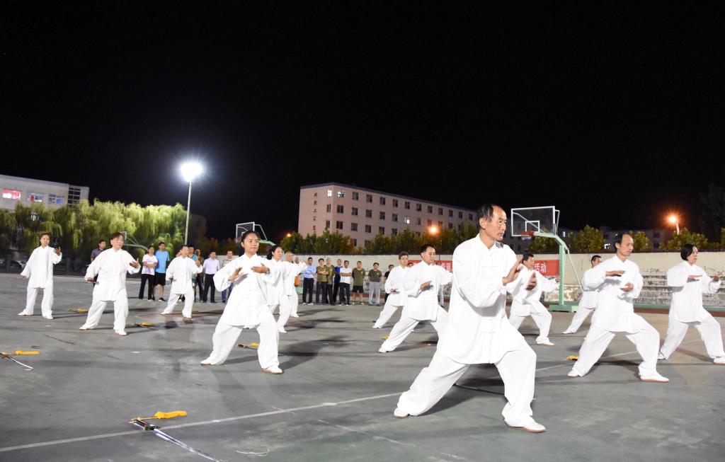 國慶來臨,為營造濃厚節(jié)日氛圍,袁店一礦組織策劃了“為祖國賀歲”主題系列文體活動,慶祝新中國成立70周年。圖為9月26日晚,袁店一礦太極拳愛好者職工在體育場進(jìn)行“慶華誕、展風(fēng)采、保安全”太極拳、太極劍表演,展示礦區(qū)職工昂揚(yáng)向上的精神風(fēng)貌,吸引了眾多職工駐足觀看。(張盼盼)