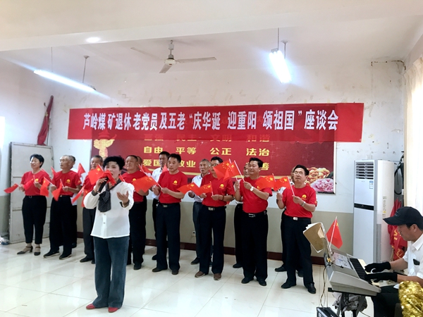 9月27日,蘆嶺礦組織退休老黨員在雙退會議室開展“慶華誕、迎重陽、頌祖國”座談會,共同暢談所憶、所感、所悟,抒發(fā)對祖國對礦山的無限情懷。活動中退休老黨員共同唱響《我愛你中國》,用這種特殊方式對祖國真情告白,向新中國成立70華誕獻(xiàn)禮。(徐麗娟)