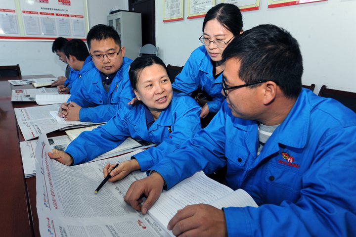 11月1日,朱仙莊礦幾名黨員正在運(yùn)用“學(xué)習(xí)強(qiáng)國”平臺(tái)認(rèn)真學(xué)習(xí)黨的十九屆四中全會(huì)精神。黨的十九屆四中全會(huì)勝利閉幕后,該礦利用廣播、電視、網(wǎng)絡(luò)、學(xué)習(xí)強(qiáng)國平臺(tái)等多種形式組織黨員干部深入學(xué)習(xí)全會(huì)精神。該礦黨員干部紛紛表示,在習(xí)近平新時(shí)代中國特色社會(huì)主義思想的指引下,全面貫徹落實(shí)全會(huì)精神,立足本職崗位,擼起袖子加油干,奮力推動(dòng)企業(yè)高質(zhì)量發(fā)展。(朱安 攝)