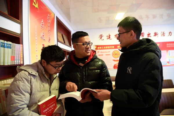12月24日,朱莊礦黨建活動室三名新來的大學生正在學習交流。今年以來,該礦黨委把大學生培養(yǎng)作為企業(yè)人才戰(zhàn)略的一項重要工作來抓,通過開展學知識、學業(yè)務、學技能,使大學生思想素質和業(yè)務技能全面提升,為礦井持續(xù)發(fā)展提供充足的人才保障。