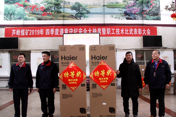 日前,蘆嶺礦職工食堂內暖意融融,歡聲笑語。由該礦舉辦的2019年四季度遵章守紀職工大抽獎暨職工技術比武表彰大會在這里舉行,近千名職工聚集在這里,共同分享安全的“果實”。
