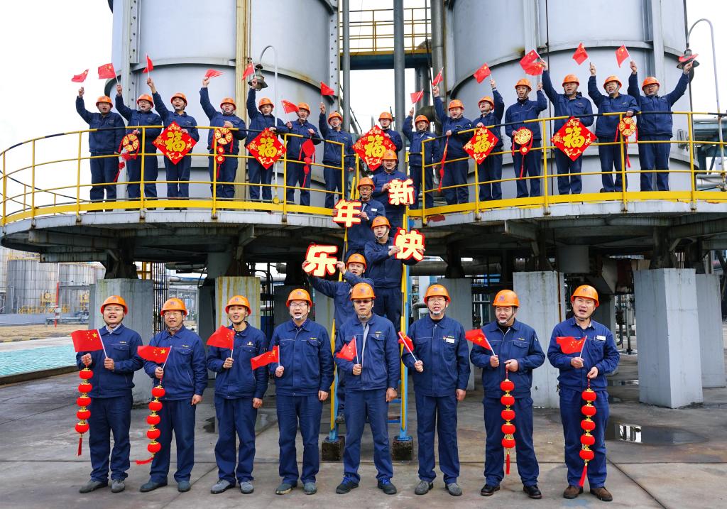 年初一,臨渙焦化公司精苯車間,利用班前會,把當(dāng)天上班職工聚集在一起,歡聚一起,拍下一張喜慶祥和的“全家?!?,車間黨支部書記劉升說:“這樣熱熱鬧鬧、紅紅火火,大家一起崗位過年是另外一種幸福。”