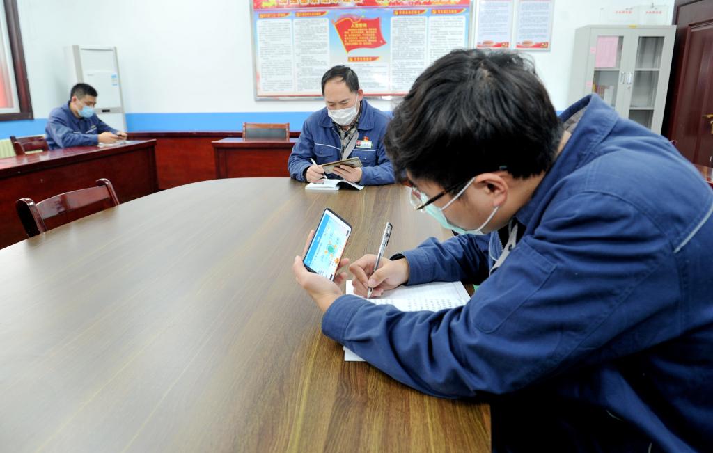 (綜掘二區(qū)職工在宿舍線上學習)
