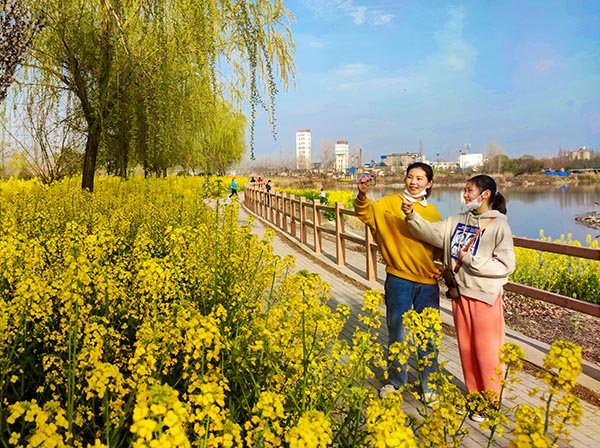 近年來,該礦因地制宜對塌陷區(qū)、垃圾堆場等進行綜合治理,相繼建成塌陷區(qū)護坡、棧橋、圍欄等工程,同時利用矸石、粉煤灰回填技術建成了“湖心島”綠化景觀公園,使礦山天藍水清景色美,生態(tài)環(huán)境和居民生活環(huán)境明顯改善。近日,朱仙莊礦塌陷區(qū)開滿了油菜花引來眾人觀賞。