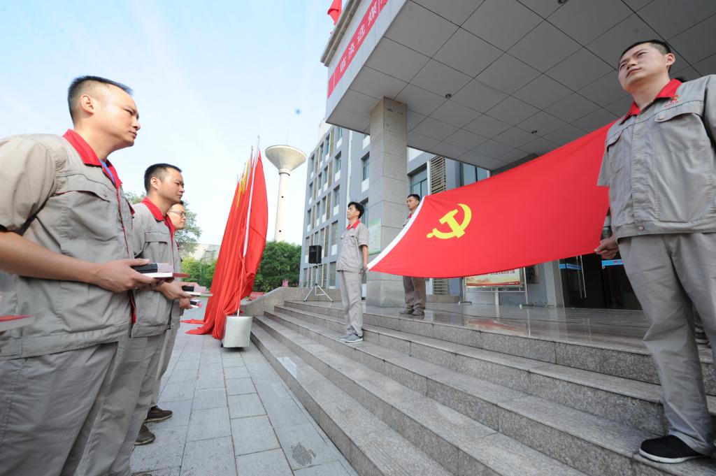 “我志愿加入中國(guó)共產(chǎn)黨,擁護(hù)黨的綱領(lǐng),遵守黨的章程,履行黨員義務(wù),執(zhí)行黨的決定,嚴(yán)守黨的紀(jì)律,保守黨的秘密……”7月1日上午,在臨選廠工業(yè)廣場(chǎng)上空,五星紅旗迎風(fēng)飄揚(yáng),百余名新老黨員面對(duì)鮮紅的黨旗莊嚴(yán)宣誓、重溫入黨誓詞。這是該廠紀(jì)念建黨99周年暨“七一”升旗儀式的一幕。