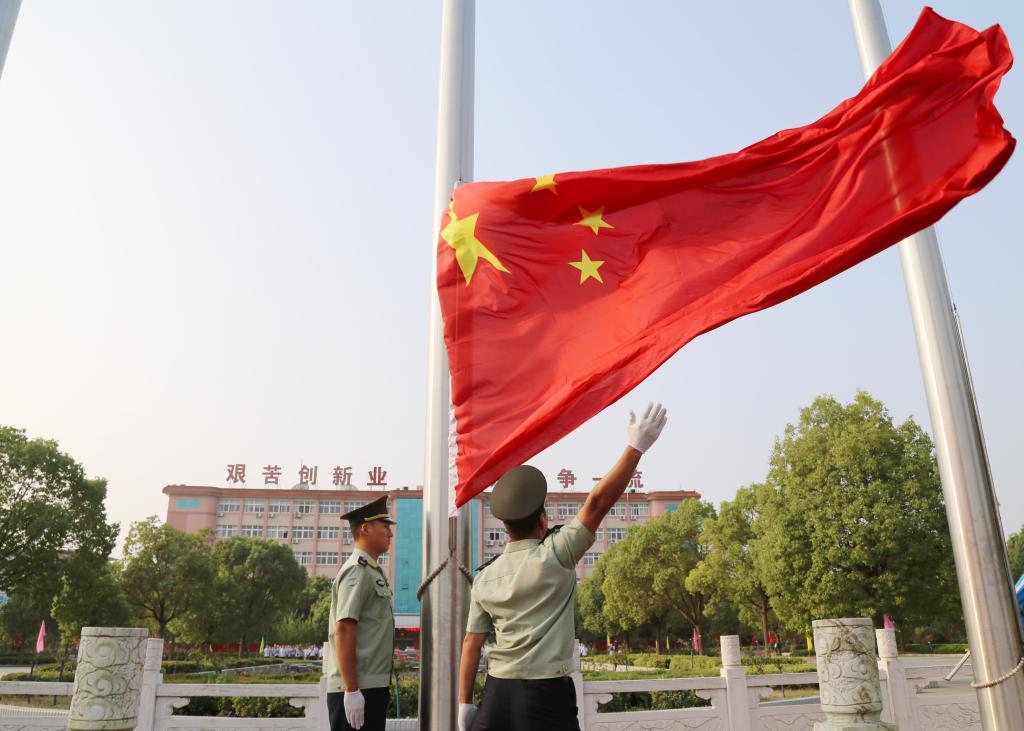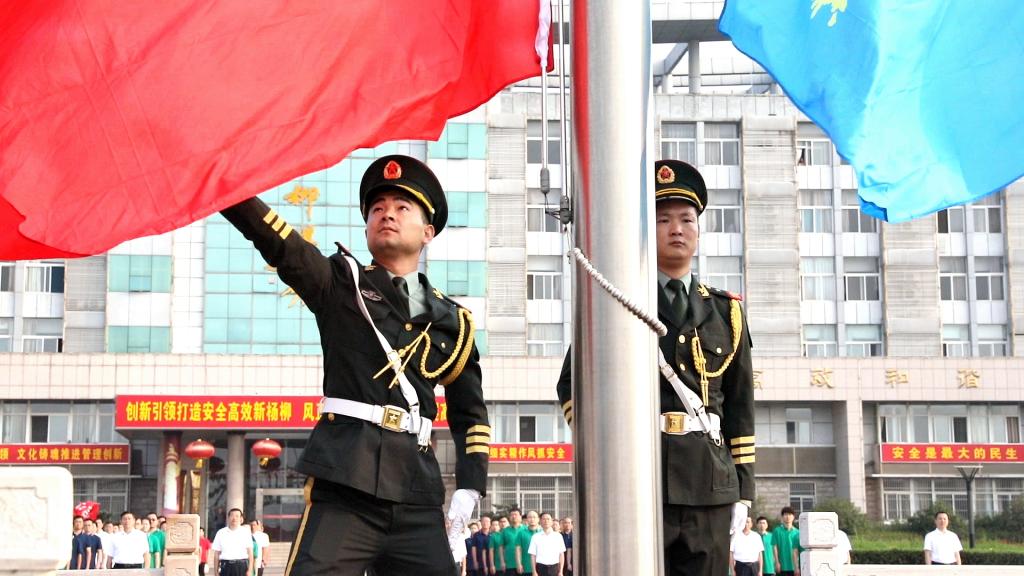 為慶祝中華人民共和國成立71周年,9月30日上午,朱仙莊礦舉行隆重的升旗儀式。礦副總及以上礦領導、機關基層單位干部職工身著整潔的服裝,排著整齊的方陣參加升旗儀式。8時18分,升旗手列隊護送五星紅旗和淮北礦業(yè)旗幟走向升旗臺。伴著高昂的國歌和嘹亮的淮北礦業(yè)之歌,鮮艷的五星紅旗和淮北礦業(yè)旗幟冉冉升起。(王莽)