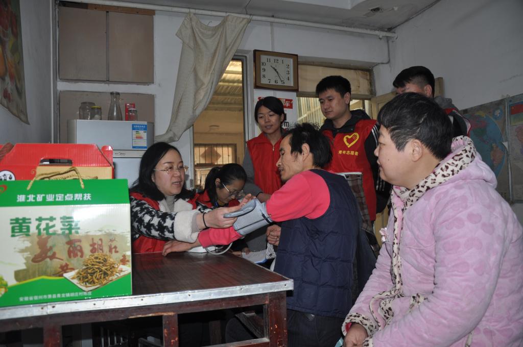 “您現(xiàn)在的血壓血糖正常,我們將對(duì)您的健康狀況做一個(gè)跟蹤?!眲倓倶s獲淮北礦業(yè)“最美家庭”的徐亞麗,在給方偉做完血壓檢測(cè)后,一邊動(dòng)作嫻熟地解開繃帶一邊用溫柔親切地話語(yǔ)與困難職工交談。志愿者除了為困難職工作一些例行的健康檢查外,還全方位對(duì)困難職工家庭進(jìn)行室內(nèi)用電設(shè)備檢查、更換絕緣老化線路、為他們送去冬季用電知識(shí)快餐等。