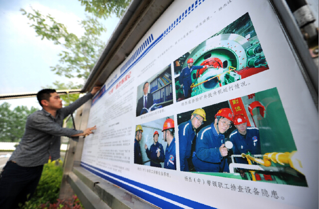 袁店二礦工作人員正在趕制典型人物燈箱牌。五一期間,該礦把“全國(guó)重大宣傳典型人物”楊杰的先進(jìn)事跡制作成宣傳畫,展示在工廣主干道,引導(dǎo)職工學(xué)習(xí)先進(jìn)、爭(zhēng)當(dāng)先進(jìn)。