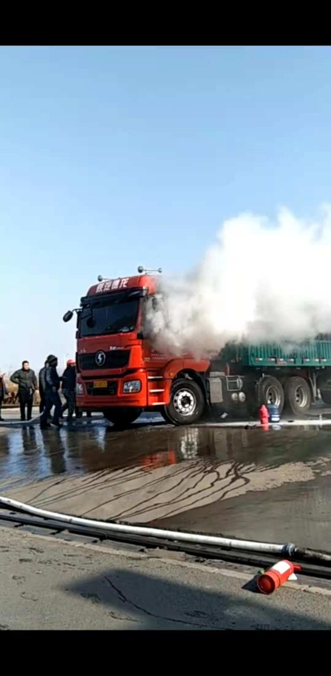 突然,陳進(jìn)聞到了一股刺鼻的焦皮味道,發(fā)現(xiàn)并排停放的另一輛裝滿鋼材的車頭正冒著煙,憑經(jīng)驗察覺到這輛貨車自燃了,危急時刻,陳進(jìn)、李文光、張思平同志立刻放下手中的工作,張思平先把行車開到遠(yuǎn)處,盡量讓設(shè)備避開危險地點,李文光急忙召集前來送貨車輛的車輛配載滅火器,打算用滅火器對其滅火,自燃車輛駕駛員看到自己的車輛冒著濃煙了,下意識的打開車門看看火情。