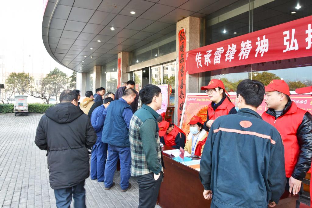 3月5日上午,孫疃礦聯(lián)合建設(shè)樓前彩旗飄揚(yáng),人頭攢動(dòng),該礦學(xué)雷鋒志愿服務(wù)小分隊(duì)搭起的服務(wù)臺(tái)一字排開,爭相為職工提供便民服務(wù)。(王亮 何東方)