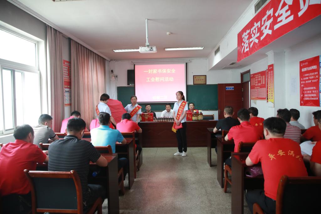 近日,渦北礦西辦公樓一樓綜掘二區(qū)會議室熱鬧非凡,掌聲不斷,引起全礦職工矚目關注。原來是礦工會主席毛洪剛帶領協(xié)安員們將大紅表揚信和慰問品送到綜掘二區(qū)中班班前會,開展“一封家書保安全”進科區(qū)慰問活動,表揚成績,鼓舞士氣。