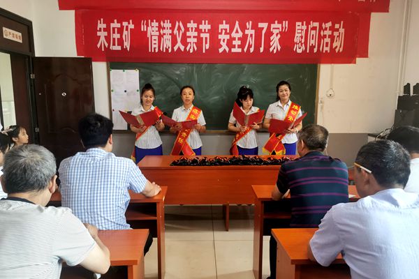 在父親節(jié)來臨之際,為樹立感恩父愛,弘揚中華孝道美德的良好風(fēng)尚。朱莊礦工會女工部組織部分女職工和萌娃,帶著慰問品和文藝節(jié)目來到綜掘二區(qū)班前會,與該區(qū)職工一起開展了以“情滿父親節(jié)、安全為了家”為主題的父親節(jié)慰問活動。