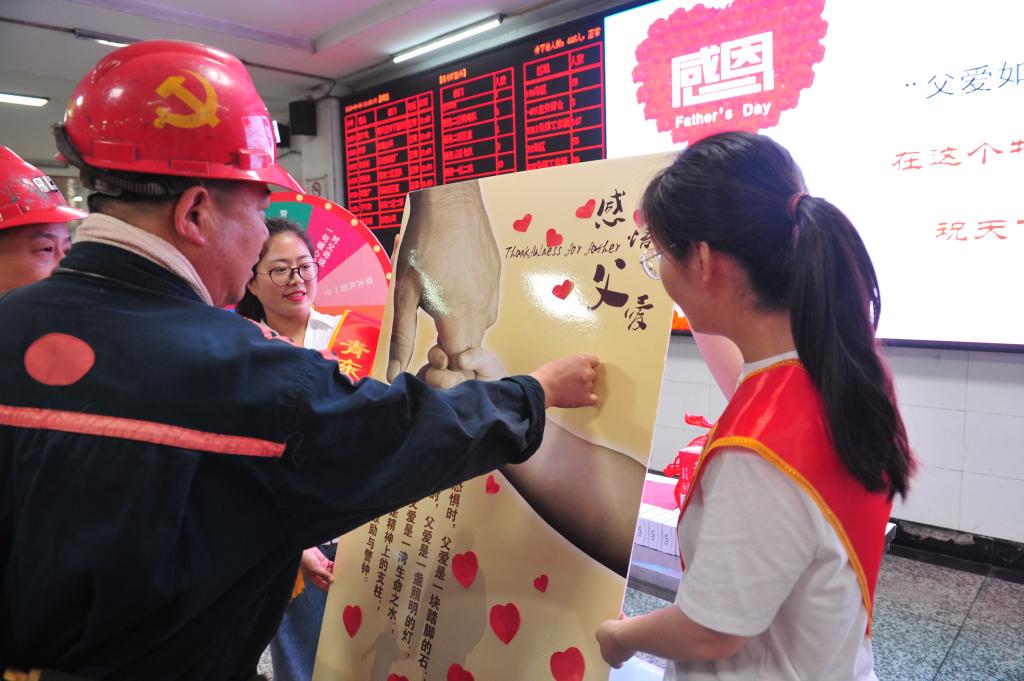 “莽莽煤海安全作舟,深深祈盼平安最重。在這個(gè)特別的節(jié)日里,祝您和天下所有的父親,節(jié)日快樂,平安健康!”協(xié)安員趙婷婷深情對(duì)職工說。為充分發(fā)揮親情、黨史教育在安全生產(chǎn)中的積極作用,6月19日青東煤業(yè)在井口開展了“祈愿父親節(jié),安全記心間”活動(dòng),引導(dǎo)干部職工增強(qiáng)安全意識(shí),規(guī)范安全行為,用平安迎接中國共產(chǎn)黨成立100周年。