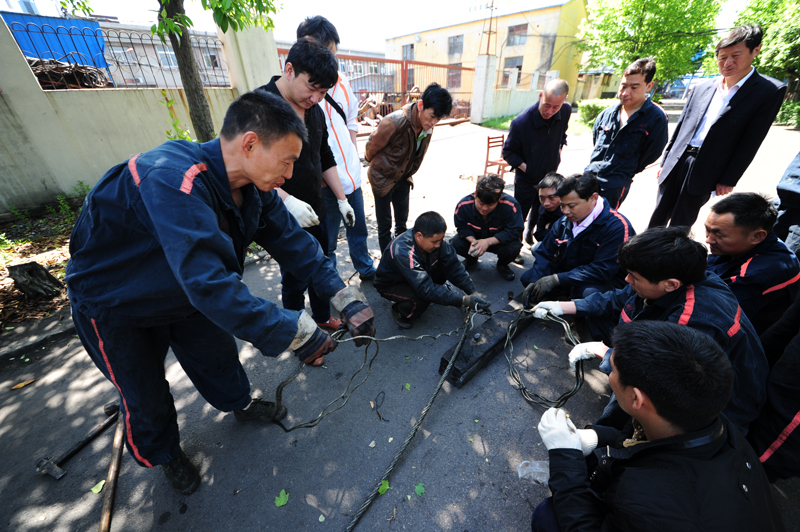 “陸老師,插接過程兩個繩頭,距離多遠(yuǎn)???”“三米?!薄安褰永K頭時一人拽住一個繩頭,這樣可以避免繩頭變亂。插接時,要抽到這個位置,另外一側(cè)也得抽到這個位置”。近日,在安徽淮北礦業(yè)海孜礦工業(yè)廣場上,技師陸建邊操作便講述邊講述操作要領(lǐng),并不時回答著現(xiàn)場發(fā)出的各類提問。10余名來自全礦各單位的職工圍站一周,仔細(xì)地看著、聽著、思考著,這是該礦“一帶一路”微課堂上的一個場景。