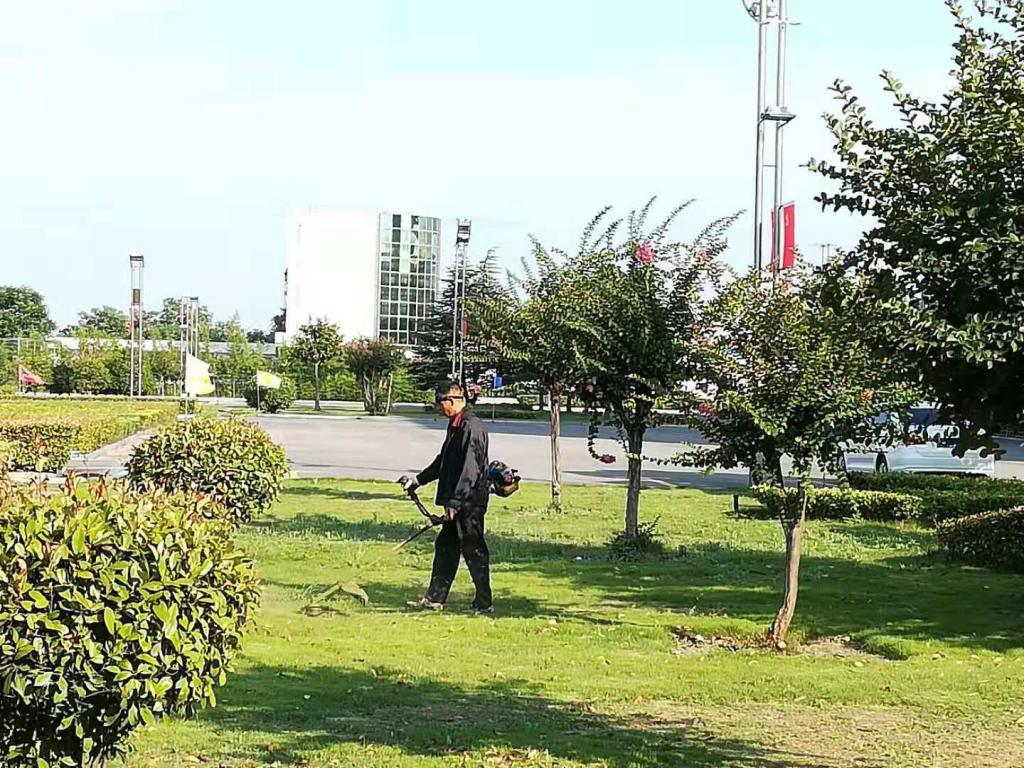 環(huán)綠隊(duì)職工楊貴華一早4點(diǎn)多就背著割草機(jī)開始割草,雖然早上涼快些,但是幾十斤重的割草機(jī)硬是壓的兩個(gè)肩膀發(fā)紅發(fā)紫。上午9時(shí)40分,太陽炙烤路面,熱浪滾滾,在礦內(nèi)長廊處一段綠化帶旁,職工朱興月身穿工作服,頭戴遮陽帽、手持塑料細(xì)管,給綠化帶中的苗木澆水?!案稍圻@行,不少是技術(shù)活,譬如澆水,給苗木補(bǔ)水可不能蜻蜓點(diǎn)水,地一定要澆透,用木棍能夠輕易插入地面10厘米左右?!?/p>
