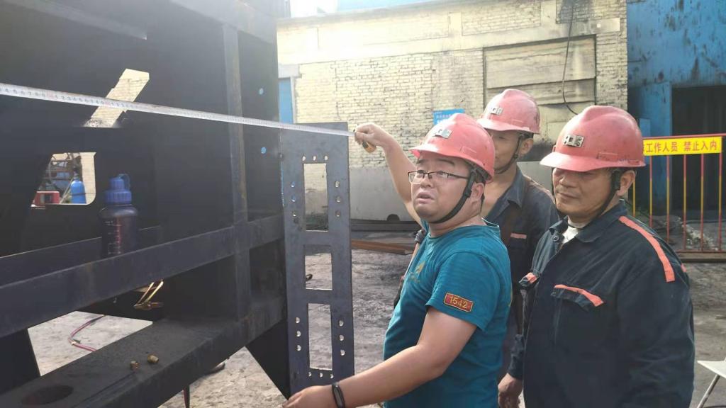 保運(yùn)區(qū)主管技術(shù)員葉靚拿著卷尺精準(zhǔn)量著箕斗尺寸,最近礦井檢修,咱就得多干點(diǎn),豆大的汗珠順著帽檐落下,趁著休息間隙,葉靚邊用衣袖擦了擦滿臉的汗,天氣太熱,葉靚能一口氣喝下兩大水杯的水。