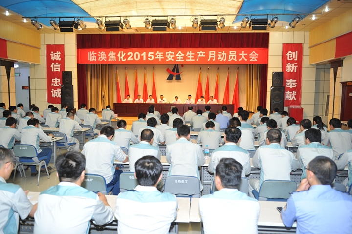 在全國(guó)第十四個(gè)安全生產(chǎn)月來(lái)臨之際,臨渙焦化公司召開(kāi)以“加強(qiáng)安全法治、保障安全生產(chǎn)”為主題的2015年安全生產(chǎn)月動(dòng)員大會(huì)。在家副總師及以上公司領(lǐng)導(dǎo)、基層班組長(zhǎng)以上管技人員、機(jī)關(guān)部門負(fù)責(zé)人參加了大會(huì)。