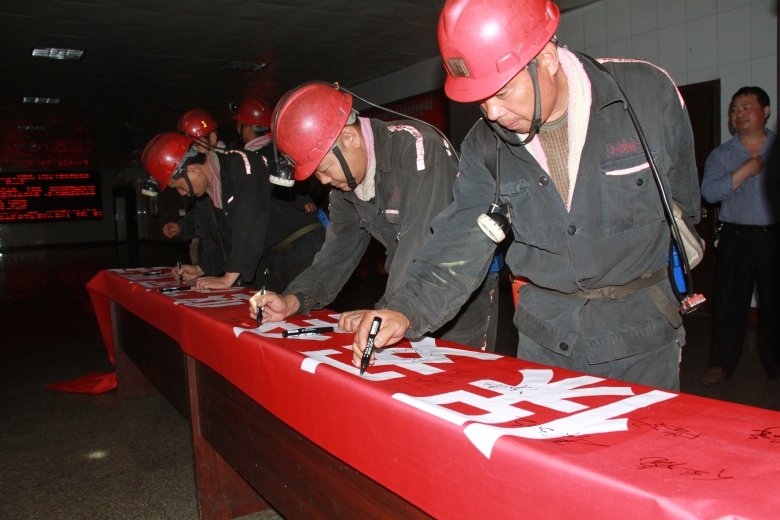 6月2日中午,臨渙礦在副井口組織開展“安全生產(chǎn)月”簽字儀式,千名干部職在印有“轉(zhuǎn)作風(fēng)、治隱患、保安全,堅決實現(xiàn)安全年”字樣的大紅條幅上鄭重簽名,帶頭承諾在“安全生產(chǎn)月”期間,自覺遵守安全管理規(guī)章制度,杜絕違章指揮、違章作業(yè),落實“兩個規(guī)范”,強化現(xiàn)場管理,堅決實現(xiàn)安全生產(chǎn)目標(biāo)。