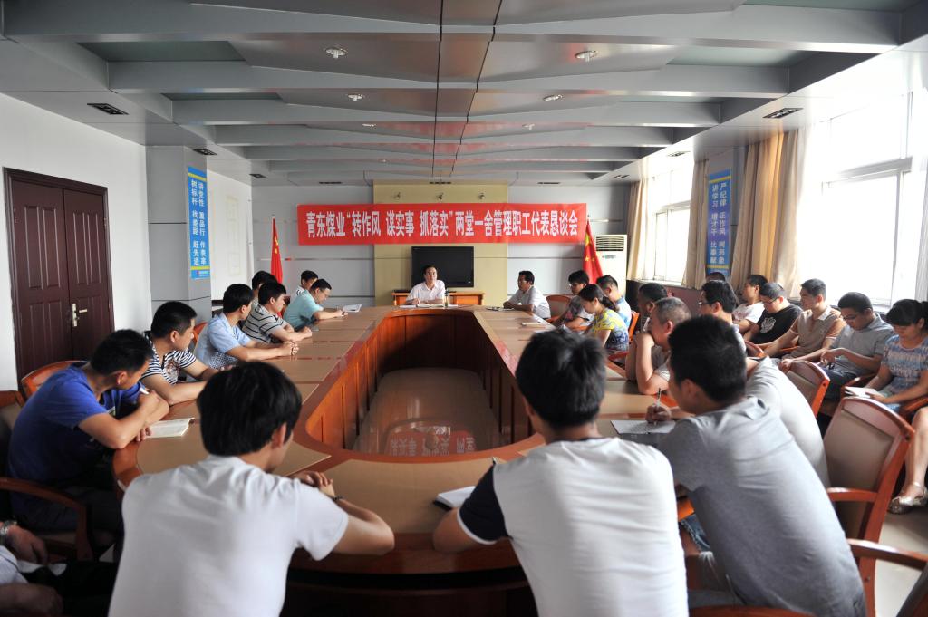 圖為青東煤業(yè)“轉(zhuǎn)作風(fēng) 謀實事 抓落實”兩堂一舍管理職工代表懇談會現(xiàn)場。