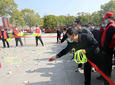 在該礦工業(yè)廣場(chǎng)一角,地面上隔著20cm就擺放著牙膏、洗衣液、香皂、沐浴露、洗潔精......琳瑯滿目的生活用品,免費(fèi)套圈的誘惑,吸引著眾多的觀眾和參與者。在現(xiàn)場(chǎng),加油聲,吆喝聲此起彼伏,好不熱鬧。