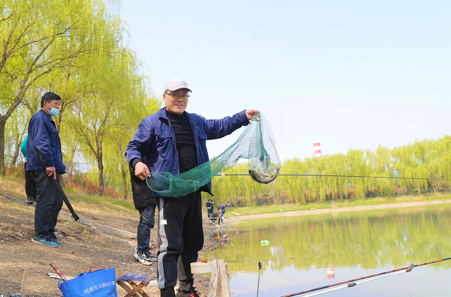 與此同時(shí),在許疃礦工人村的人工湖,參加釣魚比賽的選手們圍坐在魚塘四周,凝神注目地盯著水面上的浮漂,等待著魚兒上鉤。他們靜氣凝神,投食、裝餌料、拋桿、收桿,各展垂釣技能。經(jīng)過(guò)兩個(gè)小時(shí)的角逐,大多數(shù)選手都收獲頗豐。