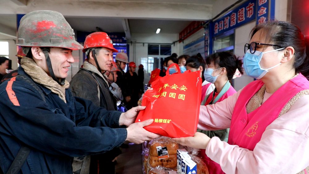 準(zhǔn)備下井的防突區(qū)職工賀豐華,欣喜地接過一份慰問禮包——一盒純牛奶、一大袋八塊面包,高興地說,雖然疫情封礦管理不能回家,但協(xié)安慰問、領(lǐng)導(dǎo)談心,頭發(fā)長了免費(fèi)剪、常見病藥能領(lǐng)到,每天還有30元免費(fèi)餐券,“疫情無情,礦井有愛。這么多關(guān)愛,很高興,很滿意!”