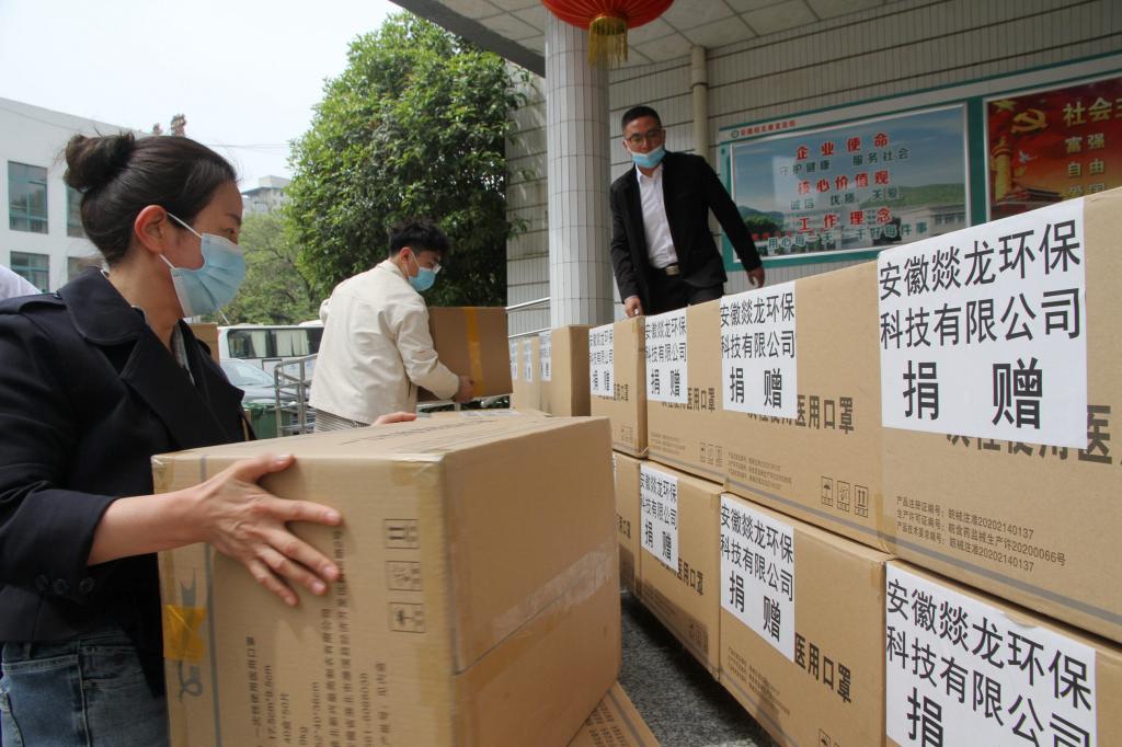 4月20日,一輛裝滿防疫物資的車輛緩緩駛?cè)氚不胀畋笨祻歪t(yī)院,安徽燚龍環(huán)??萍加邢薰緦?萬只醫(yī)用外科口罩和700件隔離服捐贈給淮北礦業(yè)集團,以實際行動支援礦區(qū)疫情防控工作。