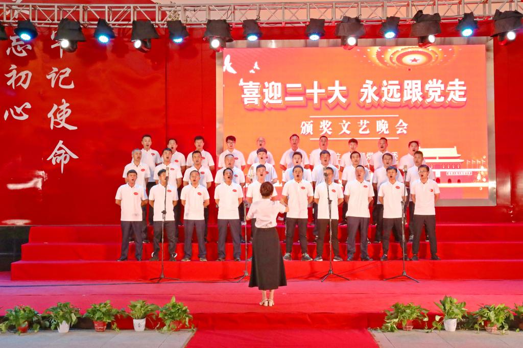 晚會在激越昂揚的配樂詩朗誦《永遠跟黨走》中拉開序幕,以獨特的藝術(shù)魅力,再現(xiàn)了共產(chǎn)黨員面對艱難困苦的環(huán)境時舍我其誰的大無畏奮斗精神,當(dāng)紅色經(jīng)典和音樂交會,鼓舞士氣、振奮人心,瞬間激起現(xiàn)場觀眾的熱情,掌聲不絕。晚會上宣讀了《信湖煤礦黨委關(guān)于表彰2021-2022年度黨內(nèi)先進集體、先進個人的決定》,隨后進行黨內(nèi)先進集體、先進個人頒獎,激勵全體干部職工見賢思齊、團結(jié)奮進、攻堅克難的進取精神。