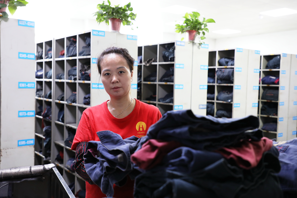 張民,物業(yè)管理科洗衣房女工。她正在仔細(xì)整理疊放洗好的工作服,先甩、再折、三整、四放動作一氣呵成、英姿颯爽。她說:“流程化的工作就要突出‘快’字,慢慢騰騰不是我們洗衣房姐妹們的性格?!?/p>
