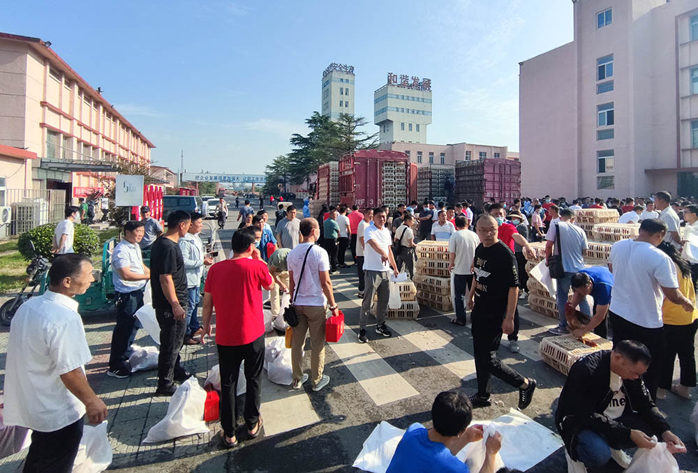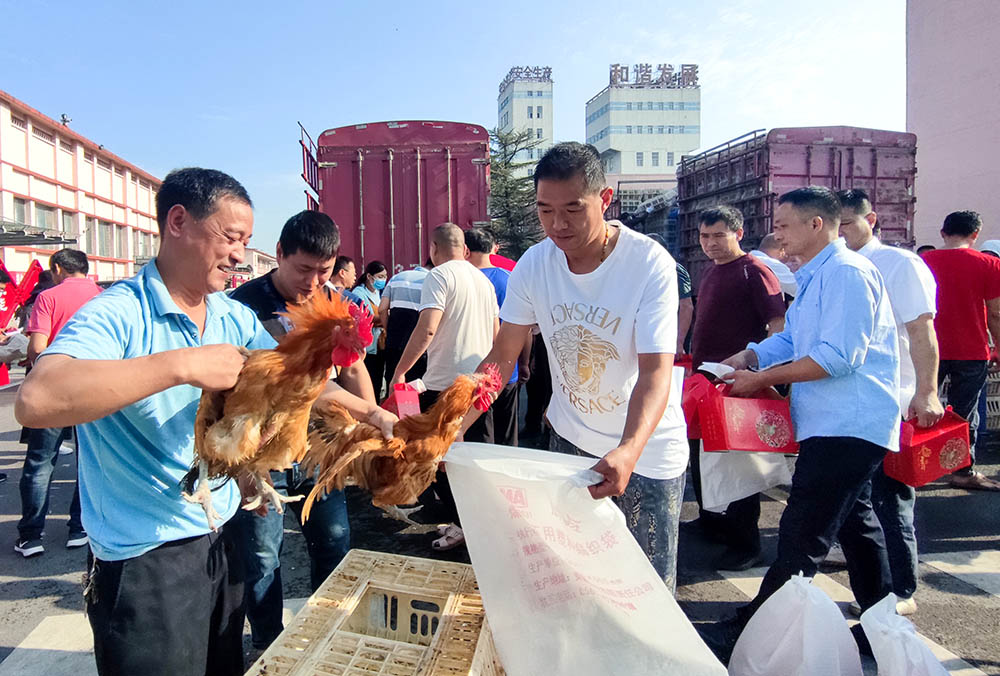“走,趕大集去,聽說這會廣場上正在發(fā)月餅和雞呢?!币幻谕l(fā)放現(xiàn)場去的職工滿臉笑意對其工友說道。早上八點不到,職工們簽字登記排隊領取礦工會準備的活雞和月餅,手推車、三輪車都派上了用場,卸貨、分裝、領取各項工作有條不紊,現(xiàn)場熱鬧非凡。