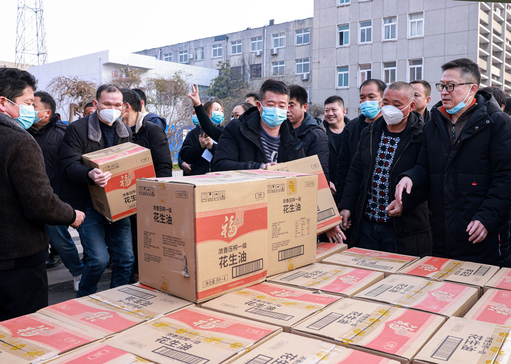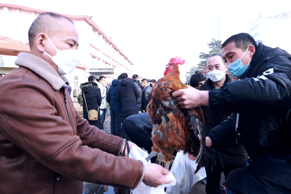 1月11日一大早,朱仙莊礦工業(yè)廣場便熱鬧起來,“走,趕大集去,聽說現(xiàn)在廣場上正在發(fā)大公雞呢,過年正好不用買了?!币幻谕l(fā)放現(xiàn)場去的職工滿臉笑意對其工友說道。早上八點,職工們簽字登記排隊領(lǐng)取礦工會準備的活雞、大米和食用油,手推車、三輪車都派上了用場,卸貨、分裝、領(lǐng)取各項工作有條不紊,現(xiàn)場熱鬧非凡。