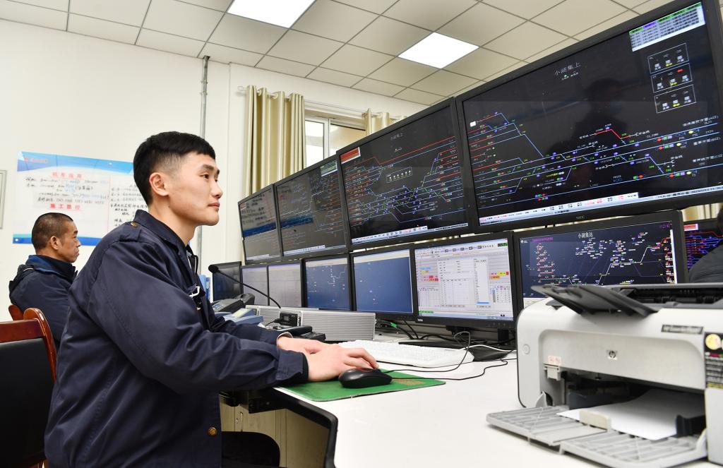 走進(jìn)保列車暢通的“大腦中樞”鐵運(yùn)處調(diào)度所,兩名工作人員正在電腦前進(jìn)行列車調(diào)度工作,面前的超大電子屏顯示著新區(qū)23個車站的列車運(yùn)行情況,密密麻麻的線條不時跳動著紅色和綠色。調(diào)度員程存遠(yuǎn)時刻關(guān)注著列車運(yùn)行圖,盯控列車的運(yùn)行狀態(tài),站場的列車分布情況都在他的腦海中?!昂拘犊誎車3401次去臨渙,3437次去孫疃站......”一條條指令從這里準(zhǔn)確下達(dá)。