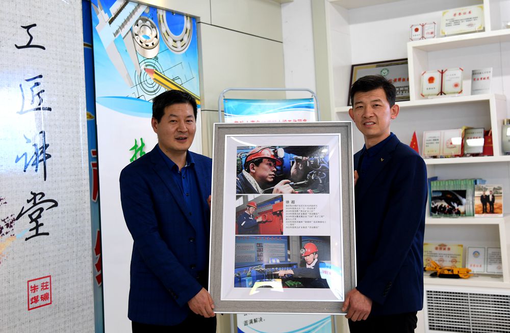 圖為朱莊礦工會(huì)為淮北礦業(yè)集團(tuán)勞模、工匠、朱莊礦綜采區(qū)機(jī)電隊(duì)隊(duì)長(zhǎng)徐超贈(zèng)送相片